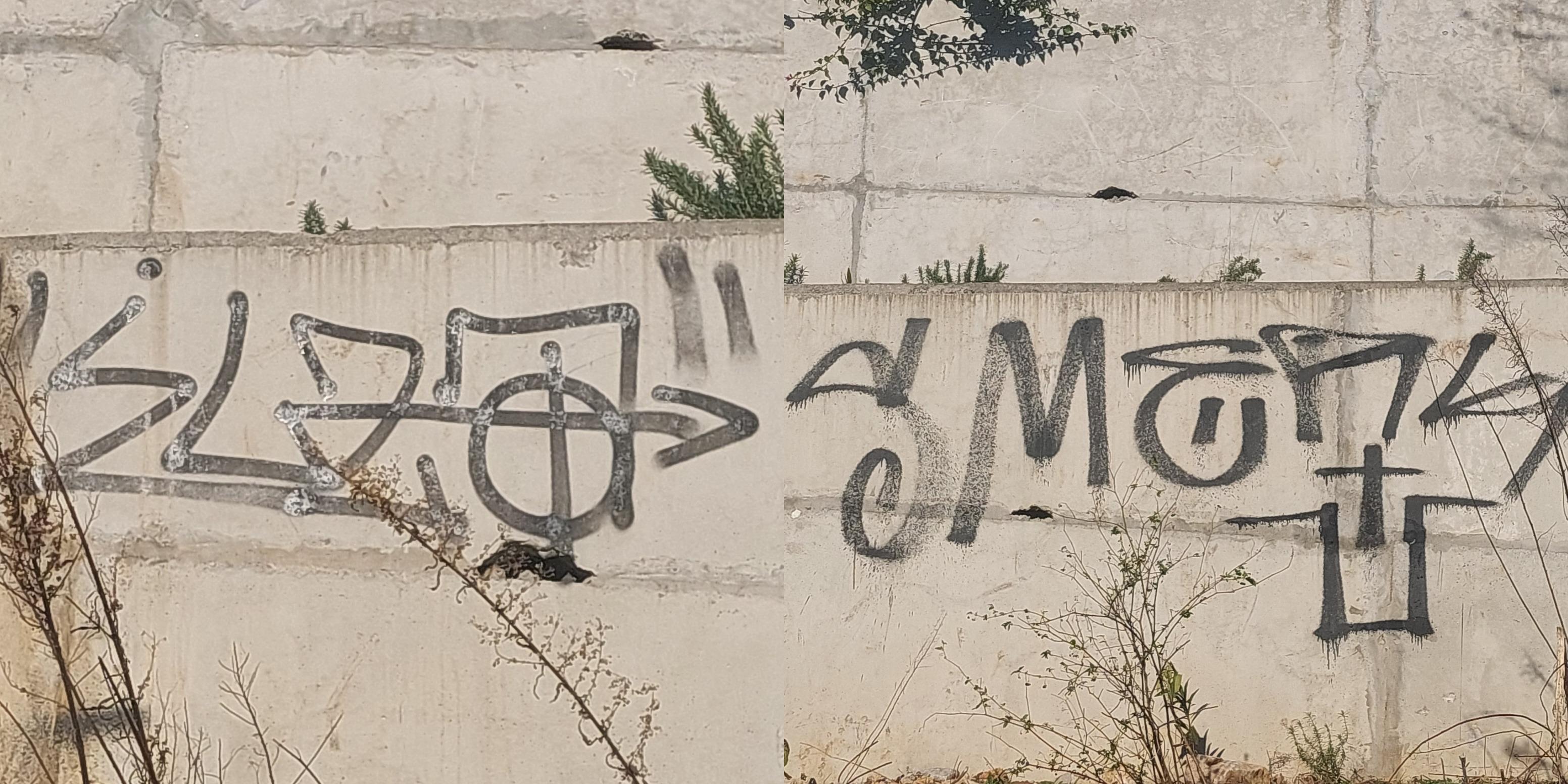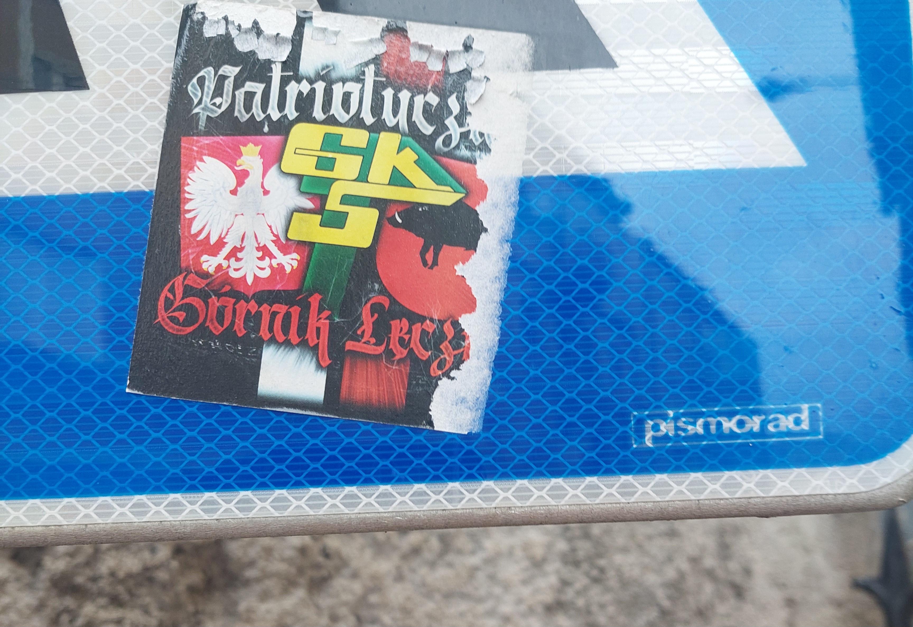 Tu vidimo i još jedan primjer prilagodbe internacionalne ekstremističke simbolike lokalnom kontekstu. Već poznati keltski križ ovdje je uklopljen u natpis, no dodatno je važno obratiti pozornost i na ostala slova, unutar kojih se možda mogu uočiti tzv. SS rune (runski alfabet).