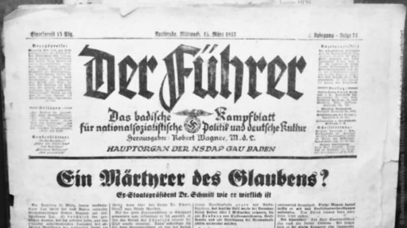 Na prvi pogled možda nije odmah uočljivo, no osim uporabe njemačkog jezika, ovdje se koristi i karakterističan Fraktur font, odnosno njegova podvrsta Tannenberg. Taj gotički tipografski stil bio je službeno i ideološki promoviran font Nacionalsocijalističke partije od 1933. do 1941. godine, kada je smatran “njemačkim pismom”. 1941. godine nacistički režim ga ukida proglašavajući Fraktur “židovskim slovima” (‘Judenlettern’), ponajprije zbog njegove nečitljivosti i potrebe za administrativnom standardizacijom. Nakon toga prelazi se na antiqua (latinična) pisma. Unatoč zabrani, taj tipografski stil ostao je snažno povezan s nacističkom propagandom te ga i danas koriste ekstremno desne skupine kao prepoznatljiv element svoje vizualne komunikacije.