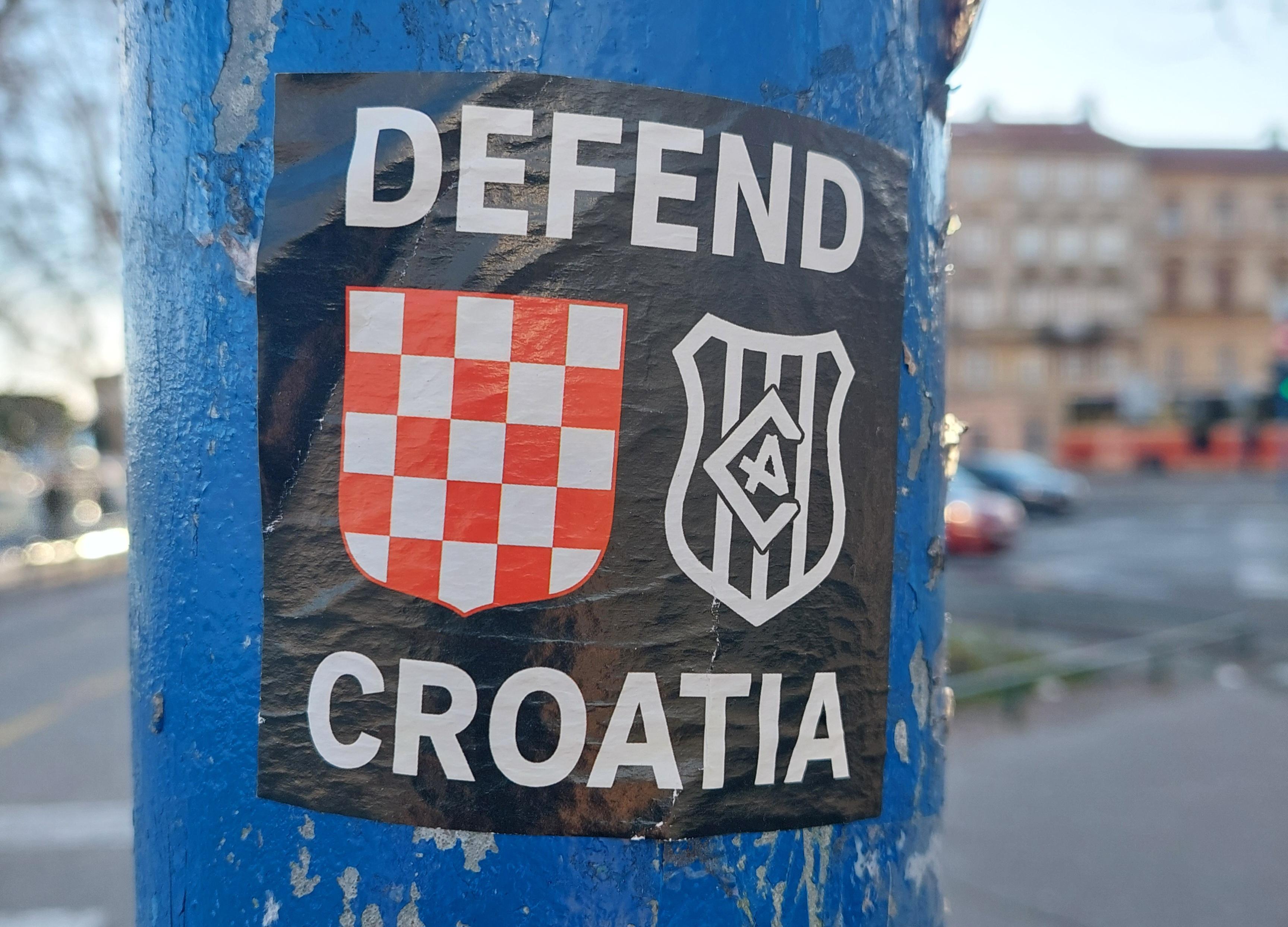 Kada smo već kod grbova i štitova, važno je primijetiti da upravo ti oblici često dominiraju u ekstremno desnoj ikonografiji. Štitovi, mačevi, militarizirani vizuali, “opasni” dečki u fantomkama s bakljama i bejzbol palicama… – sve su to motivi koji svjesno prizivaju ratnu i borbenu estetiku. Kako ističe Mirko Ilić, nogomet i navijanje često funkcioniraju kao simbolički produžetak rata koji se izgubio (poput onog koji su izgubile NDH i sile Osovine), pa se takva ikonografija prirodno seli na tribine i u navijačku kulturu. U tom kontekstu pojavljuju se i poruke poput “Defend Croatia” (‘Brani Hrvatsku’) kao da Hrvatsku i dalje treba braniti, iako su takve poruke u vremenu mira ne samo anakrone, nego i duboko besmislene.