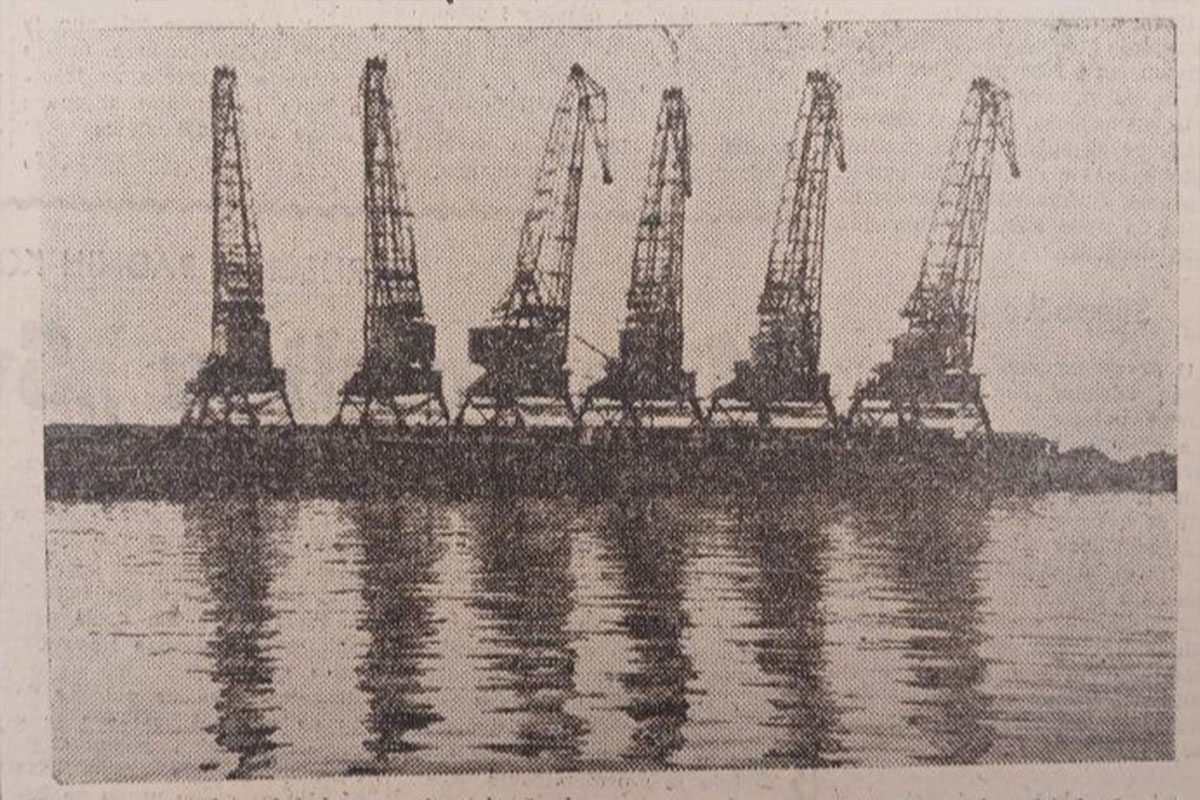 Istaknuta fotografija: Sušački lukobran, Lučke-dizalice, Novi list; 7.10.1956.